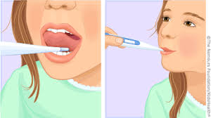 An oral measurement can be taken as a sublingual measurement (under the tongue). It is the core temperature of our body, but it may affect by the food we ate before we measure. Usually, we should wait half an hour after we eat, drink or smoke. For safety, it is recommended for adults and children who have already attended primary school. The normal oral temperature range is approximately between 35.5 °C and 37.5 °C. Typically, the digital thermometer is used for measuring the temperature under the tongue; however, the hygiene issue is the primary concern.