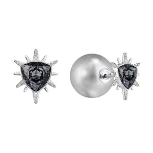 Two in one. Inspired by stars, this pair of pierced earrings features a celestial motif that sparkles in dark grey and clear crystal. Wear them with standard earring backs, or add the grey Crystal Pearl earring backs for an on-trend ‘front and back’ look. Both pairs of earring backs are included.