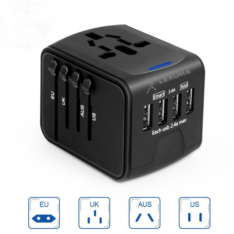 ✦ Output: US/AU/UK/EU plugs with 4 USB ports and a AC socket