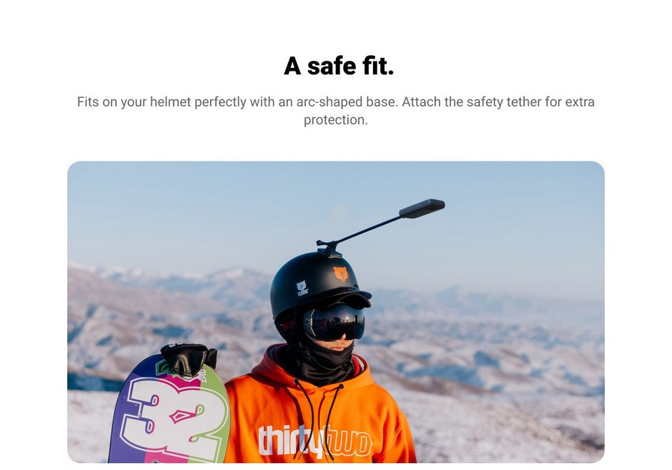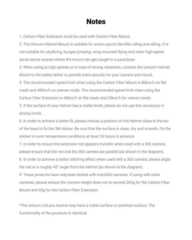 The Unicorn Helmet Mount is suitable for action sports like bike riding and skiing. It is not suitable for skydiving, bungee jumping, wing-mounted flying and other high-speed aerial sports scenes where the mount can get caught in a parachute.