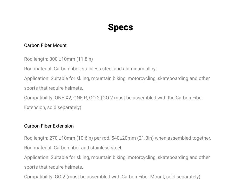 Compatibility: X3, ONE RS (1-Inch 360 excluded), ONE X2, GO 2 (GO 2 must be assembled with the Carbon Fiber Extension, sold separately), ONE R, ONE X