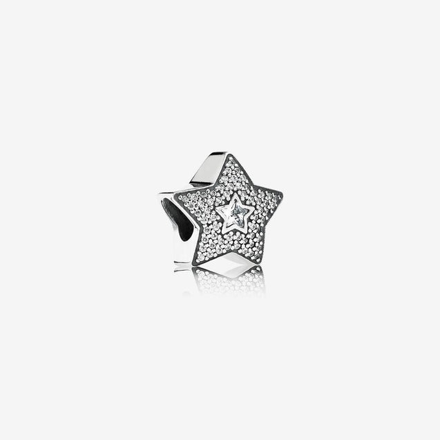 A dreamy, hand-finished star charm in sterling silver by PANDORA, illuminated with both star-shaped and micro pavé-set cubic zirconia.