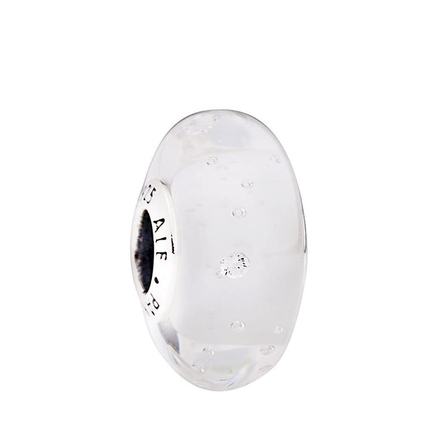 Soft white murano glass with bubble detail creates this charm. Made from sterling silver.