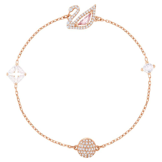 Opt for subtle glamour, and touches of cool romance, with this dainty rose gold-plated bracelet. Featuring a swan motif with a full-cut crystal body in cool millennial pink and crisp clear pavé lines, it's a Swarovski design through and through. It also features our innovative magnetic closure, which will allow you to blend in strands from our Swarovski Remix Collection to create a bespoke look - be it double-wrap bracelet, necklace, or choker. Perfect for versatile styling, it will take pride of place in your collection. Matching items are available.