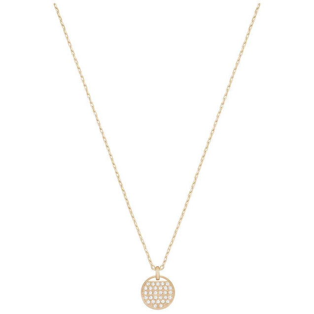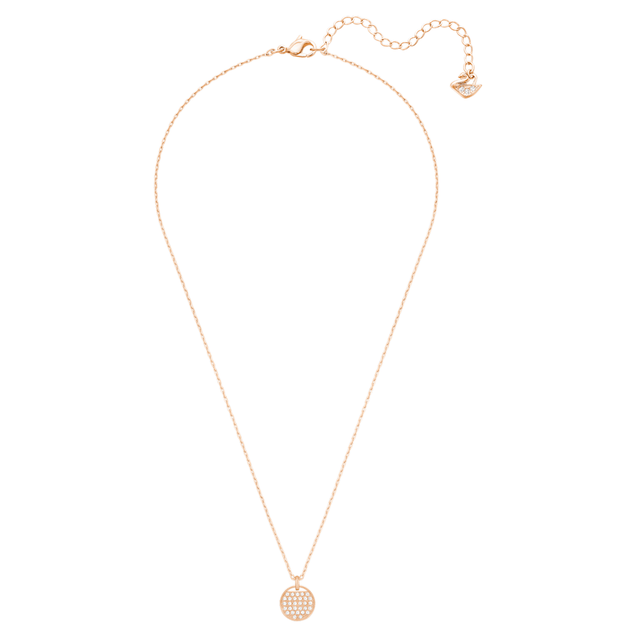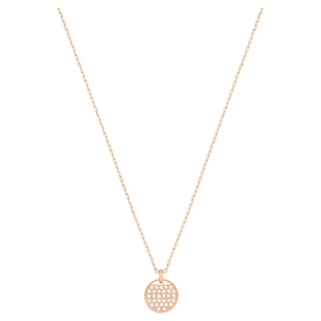 Elegant and easy-to-wear, this circle pendant is perfect for mixing and matching with other styles of different lengths for an on-trend multi-layered look. It features a disc embellished with sparkling crystal pavé, which dangles from a delicate rose gold-plated chain.