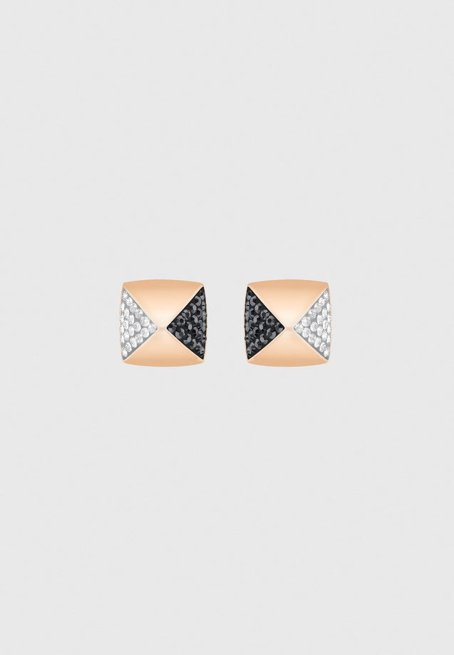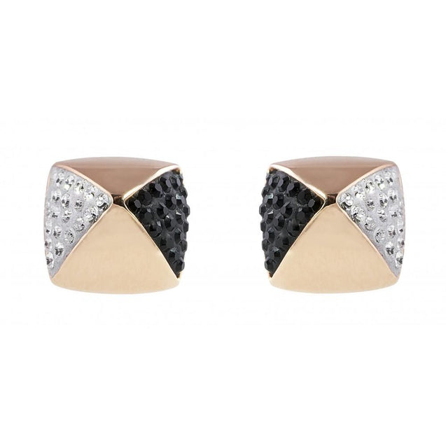 This pair of rose gold plated stud earrings shine with black and clear crystals, which have been set using Swarovski exclusive Pointiage technique. A modern take on classic sparkle, the on trend color combination and subtle design will elegantly complete your outfit. Suitable for any occasion, you could mix and match with other Glance jewellery pieces to create different looks.