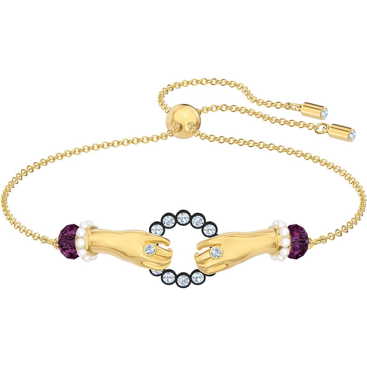 The Tarot Magic jewellery line is inspired by the mysterious world of tarot symbols. This fascinating gold-plated bracelet shines with two hands and a wealth of colourful crystal details. This fascinating piece of jewellery is the perfect conversation starter on many elegant occasions. The adjustable tensioning mechanism ensures secure wearing comfort. Each piece brings the brand's precision-cut crystal into its own and reflects the beauty of light.
