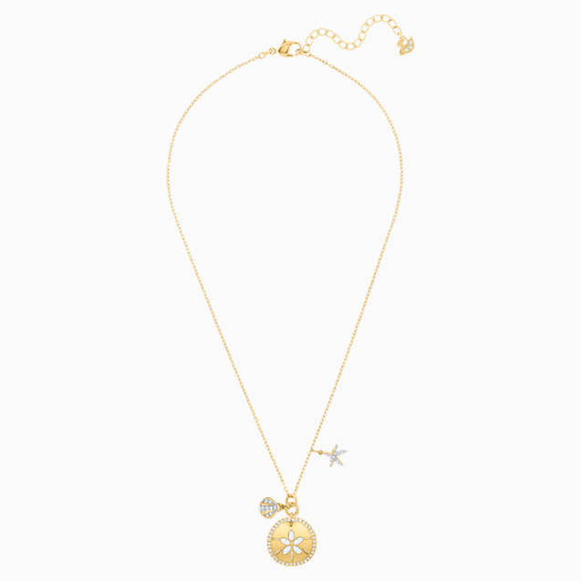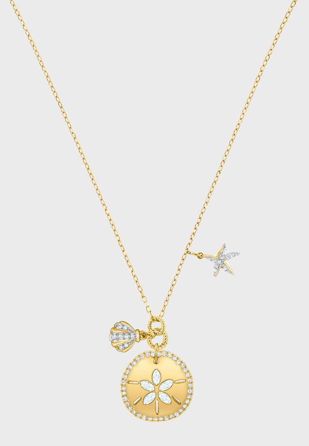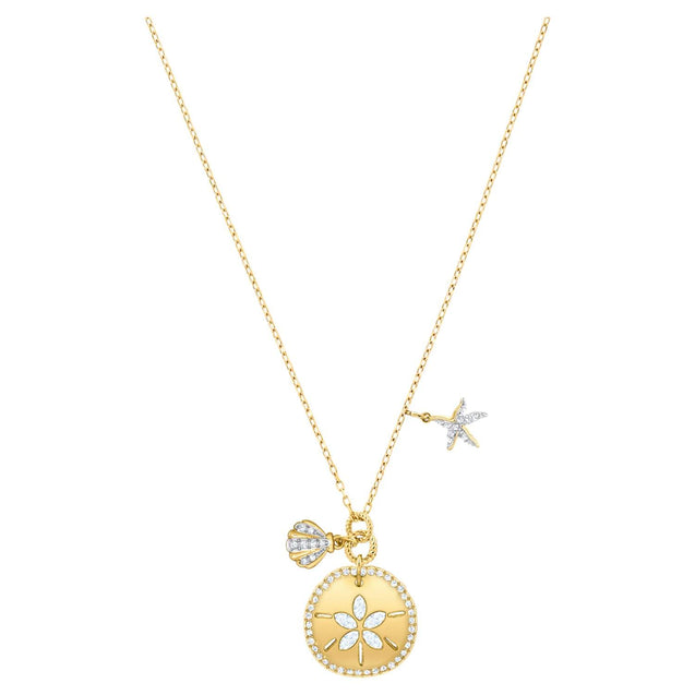 Get that vacation feeling, whatever the weather, in this playful, summery necklace. Inspired by the underwater world, the gold-plated design features a coin, a starfish, and a shell motif. Crystal embellishments add a glam touch of Swarovski sparkle. Layer with other styles for an on-trend layered look.