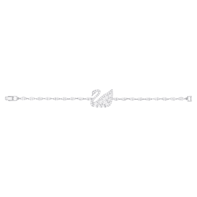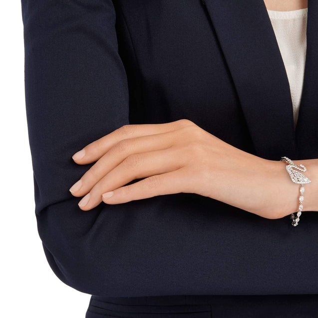 This elegant bracelet captures the grace of a swan – Swarovski’s iconic symbol. Delicately embellished with marquise-shaped stones and pavé, it sparkles softly enough to complement any outfit. A perfect rhodium-plated gift for a loved one.