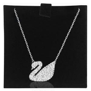 This elegant rhodium-plated pendant captures the grace and elegance of a swan. Delicately embellished with clear crystals set in pavé, it sparkles softly and complements any outfit. The pendant comes on a chain.