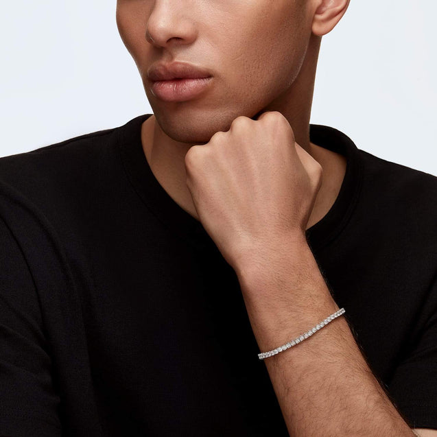 Full of classic sparkle and contemporary edge, this unisex Tennis Bracelet will enhance any outfit. It features rhodium plating and a strand of prong-set stones. An elegant and minimalistic must-have for everyday wear.