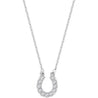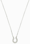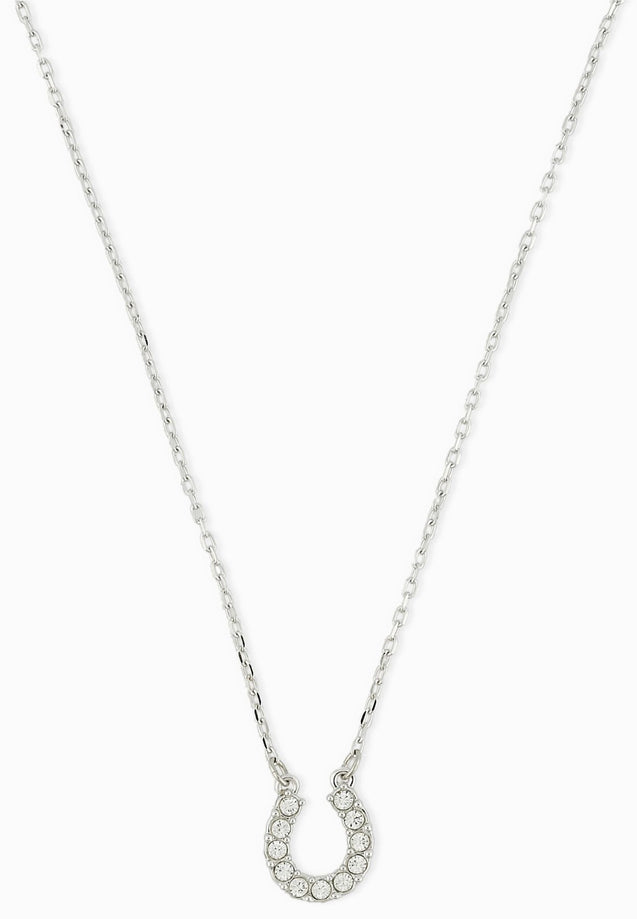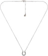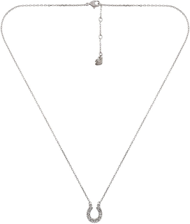A Swarovski necklace crafted in rhodium-plated metal. This necklace features a horseshoe pendant filled with a crystal pave design. Wear this as a good luck charm or simply to add a touch of sparkle to your outfit.